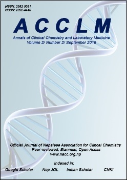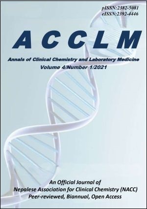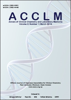 Annals of Clinical Chemistry and Laboratory Medicine (ACCLM) is an official Journal of Nepalese Association for Clinical Chemistry. ACCLM is a peer-reviewed, biannual journal.